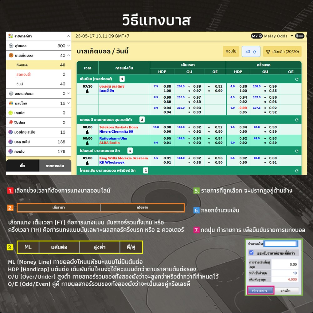- กดราคาบาสที่ต้องการแทง